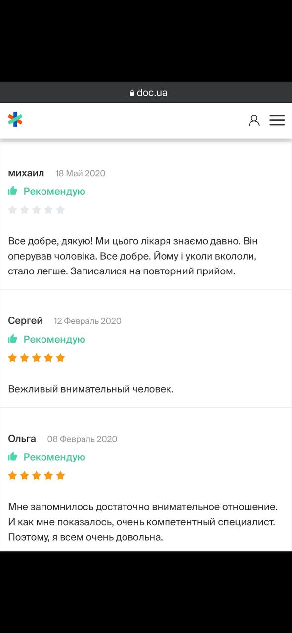Протягом усього процесу лікування та реабілітації, доктор Науменко проявляв особистий інтерес до мого стану та результатів.